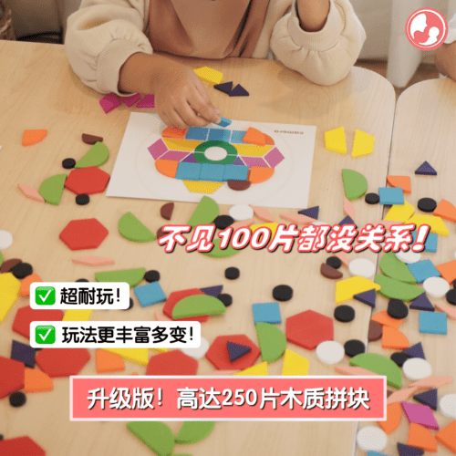 🔸 250片高质量木制拼块,玩法更丰富