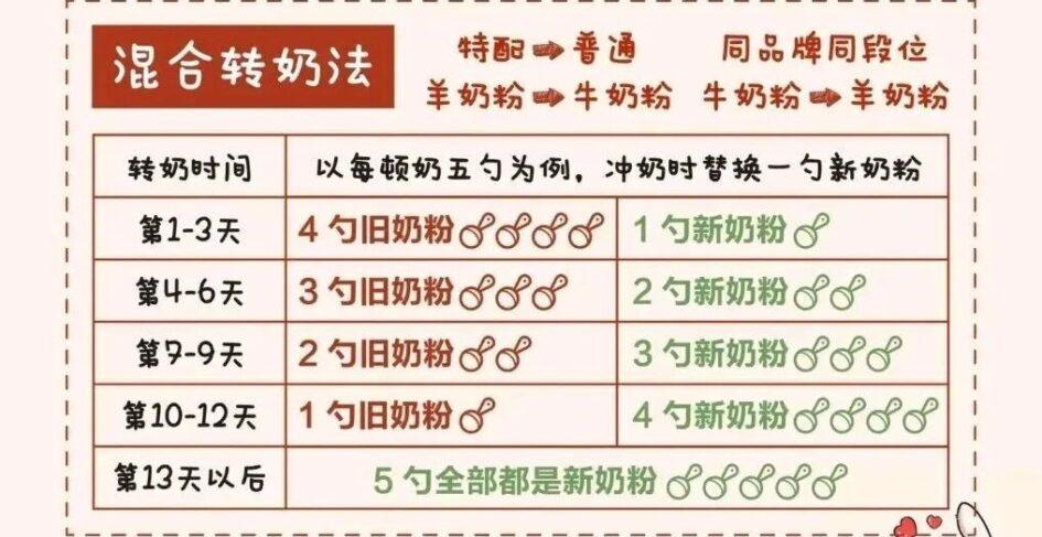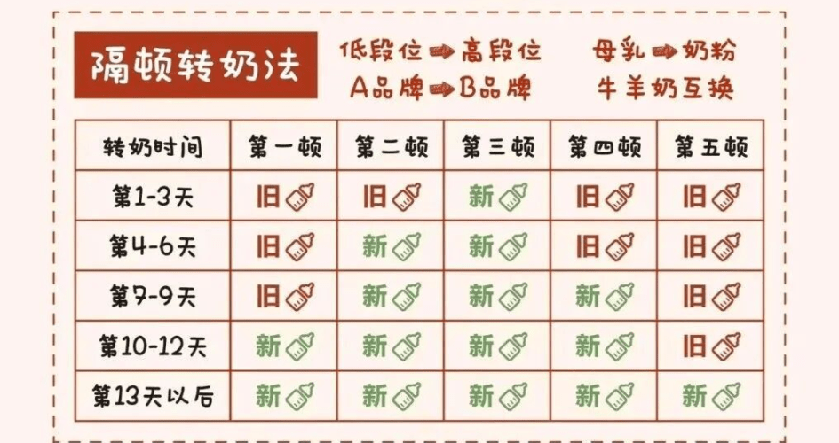 对于同品牌不同系列或不同段数、冲调比例接近的奶粉,也可以采用混合转奶的方法。