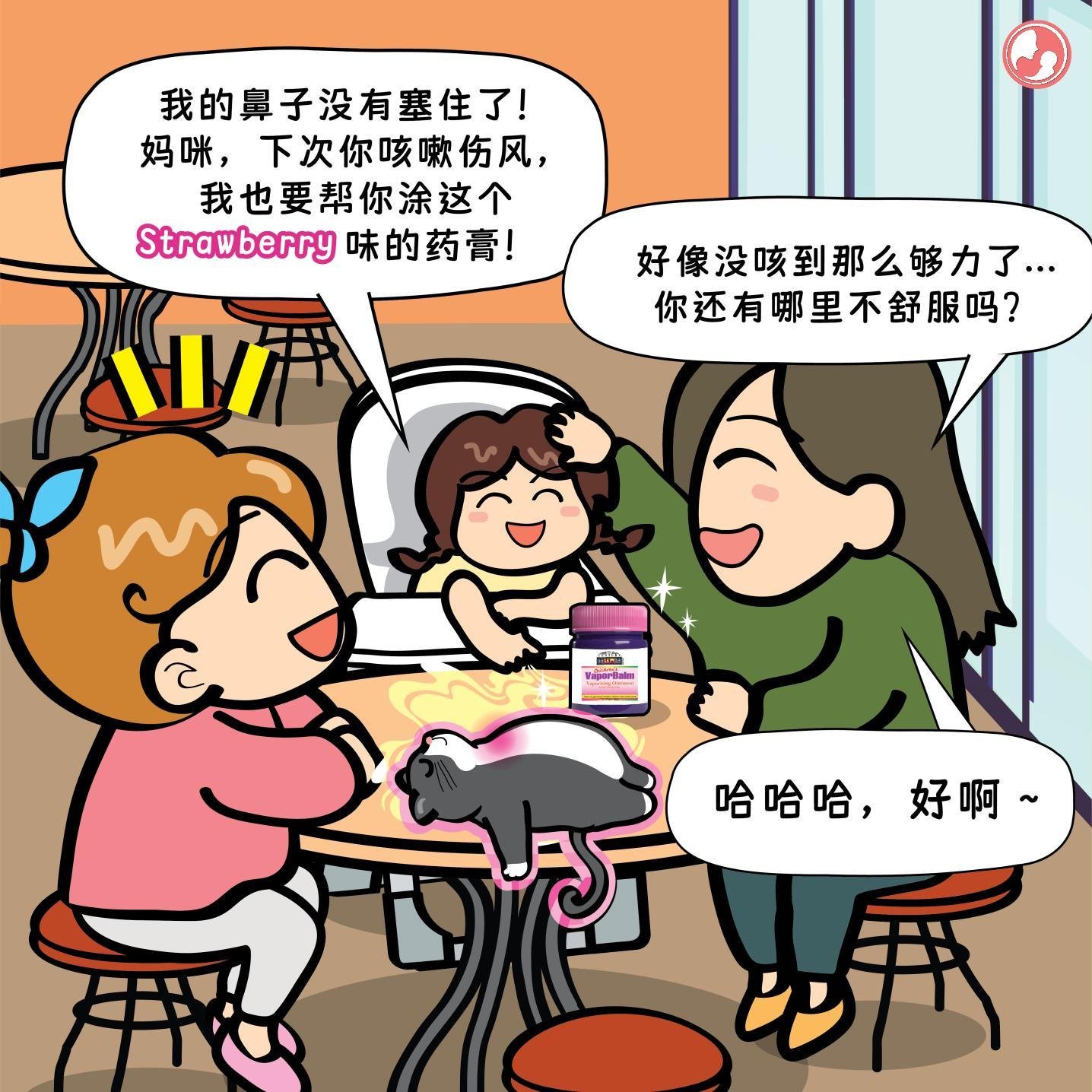 👧 Amy:我的鼻子没有塞住了!妈咪,下次你咳嗽伤风,我也要帮你涂这个 Strawberry 味的药膏!