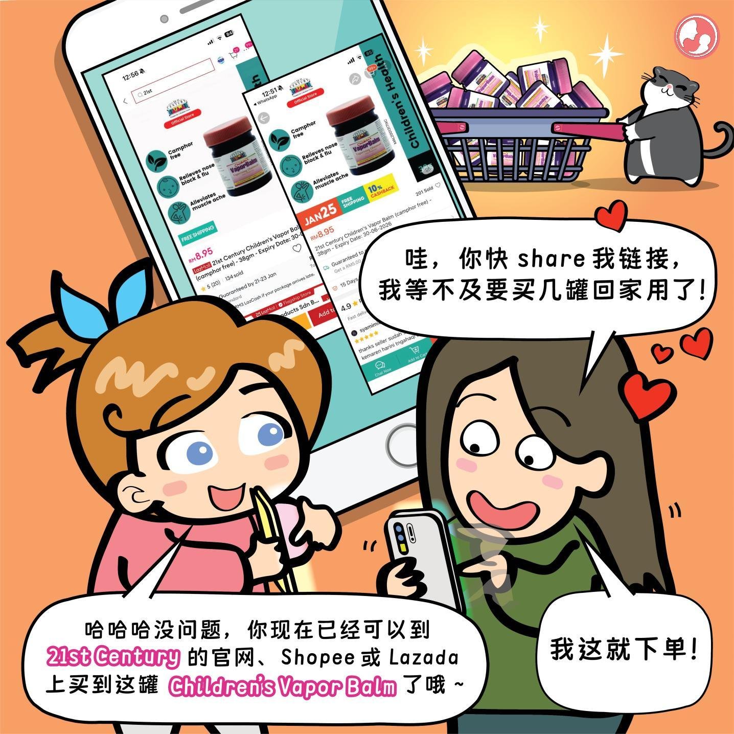❤️ MamaClub:哈哈哈没问题,你现在已经可以到 21st Century 的官网、Shopee 或 Lazada 上买到这罐 Children’s Vapor Balm 了哦~