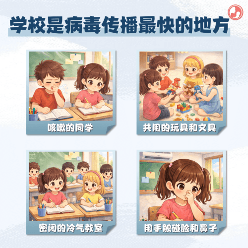 从咳嗽、感冒的同学,到共用的玩具和文具,再到密闭的冷气教室…