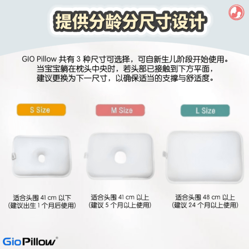 𝐆𝐈𝐎 𝐏𝐢𝐥𝐥𝐨𝐰 共有 3 种尺寸可选择,可自新生儿阶段开始使用。