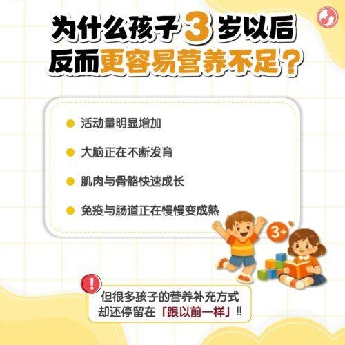 这看起来好像没什么问题…但其实 3 – 9 岁,正是孩子最容易营养不足的阶段!