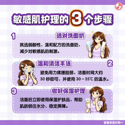 挑选弱酸性、温和配方的洗面奶,减少对敏感肌的刺激